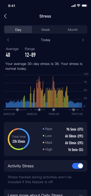 A single charge lasts 38 hours for outdoor activities or 31 hours with dual-frequency GPS. Experience 20 days of non-stop use or 6 full days when using Always-On display mode.