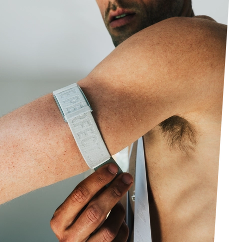 Worn on the upper arm, our optical heart rate monitor offers the accuracy of a traditional chest strap but with unparalleled comfort. A low-profile and soft fabric band lays flat and sits discreetly underneath a cycling jersey.